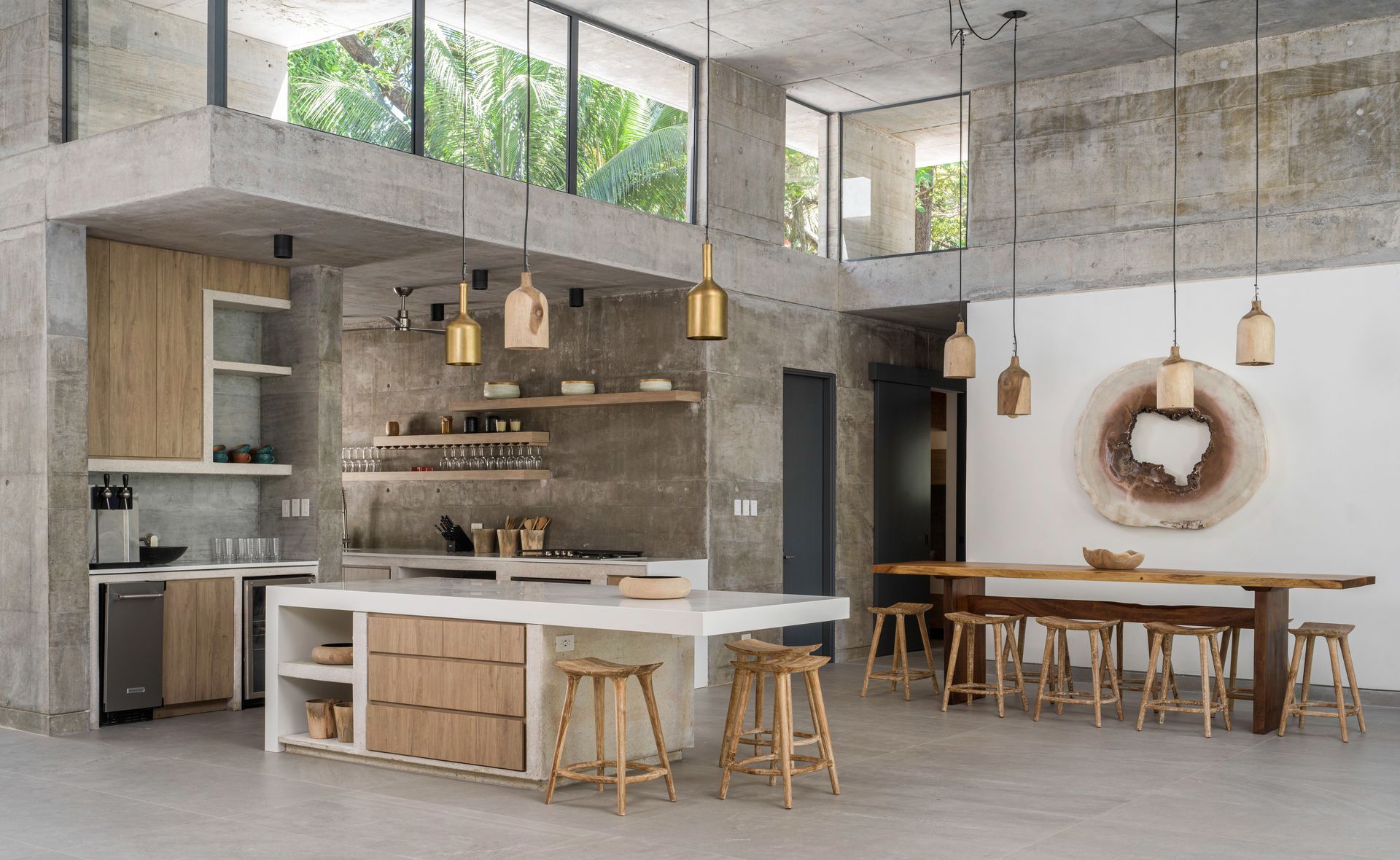 - Fully equipped kitchen with bar seating and console-style table for 8–10