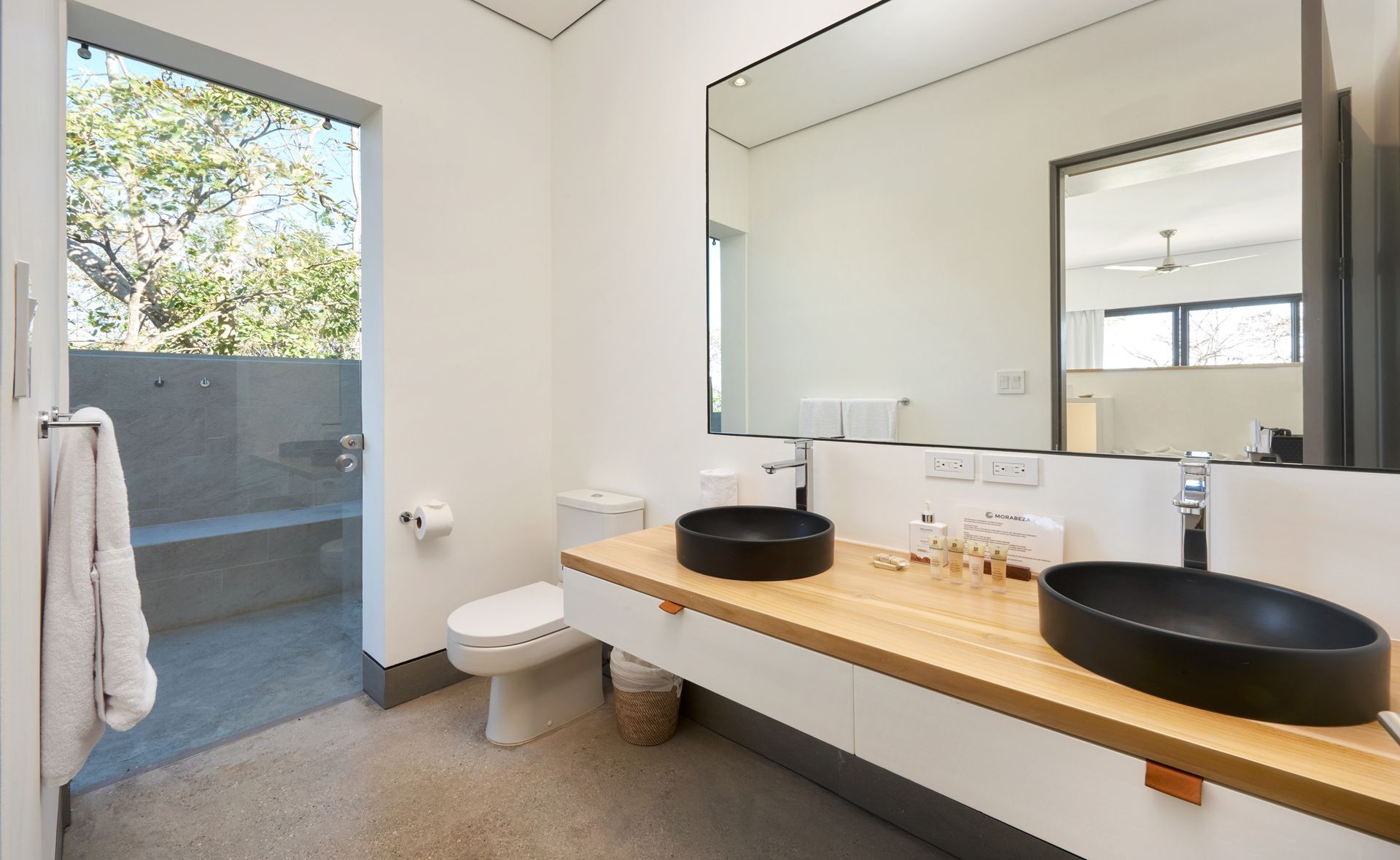 Some bedrooms have outdoor showers with ocean views. There is a separate studio, adjacent to the villa with a queen-size bed, full bathroom, table and kitchenette — ideal for family members who want privacy or staff visiting with you (babysitters, chefs, etc.).
