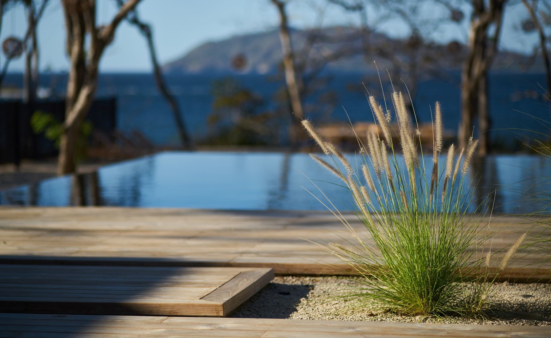 The very large outdoor terrace includes lounge areas around the pool and a second dining table in front of the beach with spectacular views — perfect for enjoying a cocktail while watching an amazing sunset.