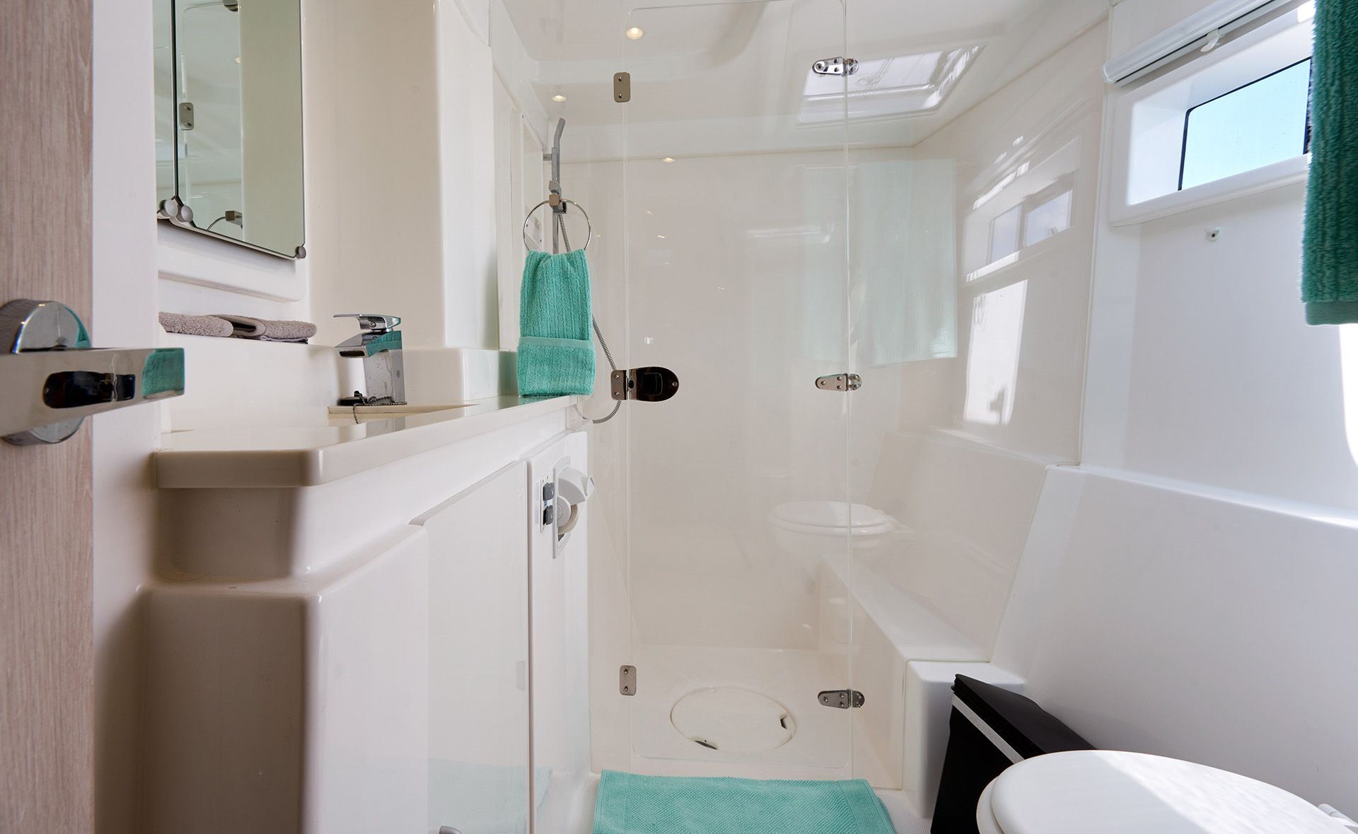 Take a moment to appreciate the bathroom. Imagine enjoying a refreshing shower after a day of sailing and winding down after an adventure. while surrounded by the beautiful ocean. ๐ฌ๐ด